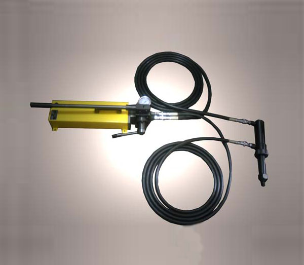 - 1臺—手動液壓油泵; 1根—5米長黑色雙層鋼絲編織膠管,工作壓力60MPa以下,試驗壓力90MPa; 1只—三通表座接頭;