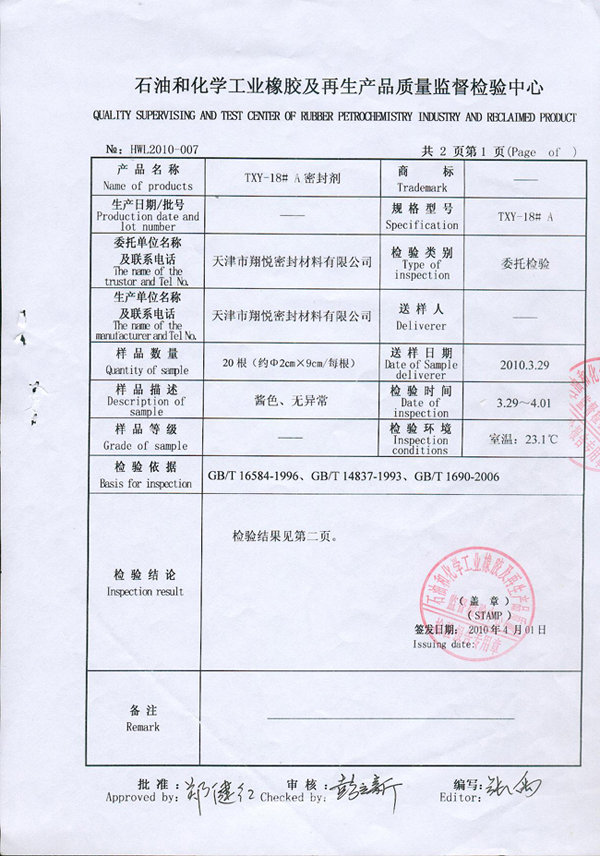 天津市翔悅密封材料股份有限公司 版權(quán)所有 備案號:
